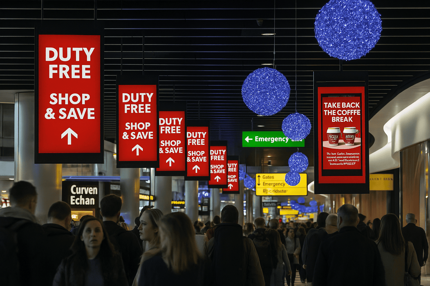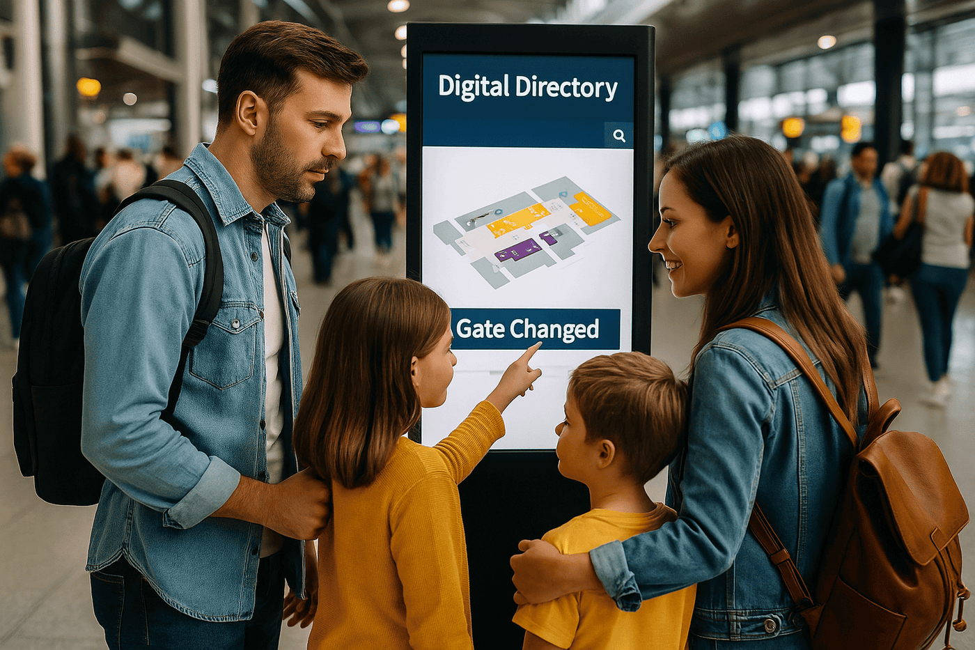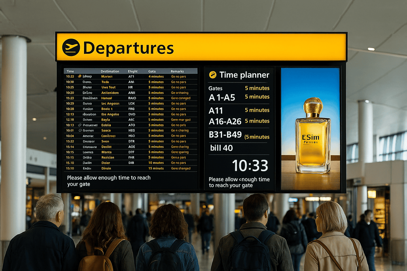 welcoming them, guiding them, informing them.Whether it’s departure boards, wayfinding maps, check-in prompts, or lounge promotions —