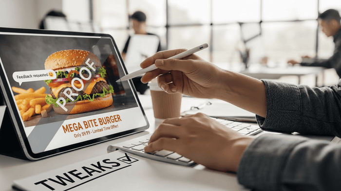 No problem. We have access to a library of millions of premium stock video/images, and we use Generative AI to create hyper-realistic food imagery that matches your menu items perfectly.
